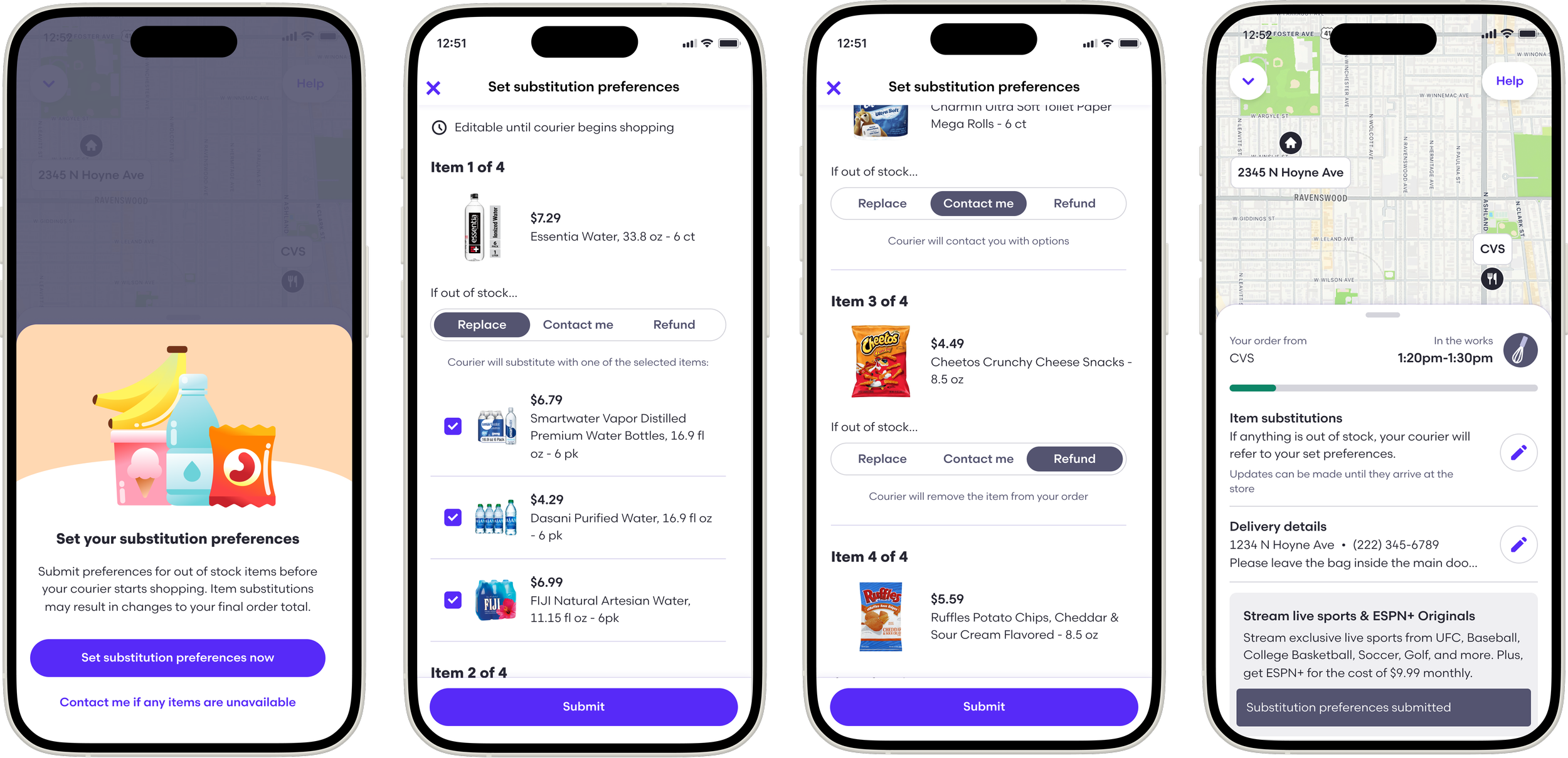 To ease frustration, reduce support costs, and prevent delays during shopping, we wanted to give customers a way to proactively set substitution preferences so drivers would know what to do when items were out of stock.
