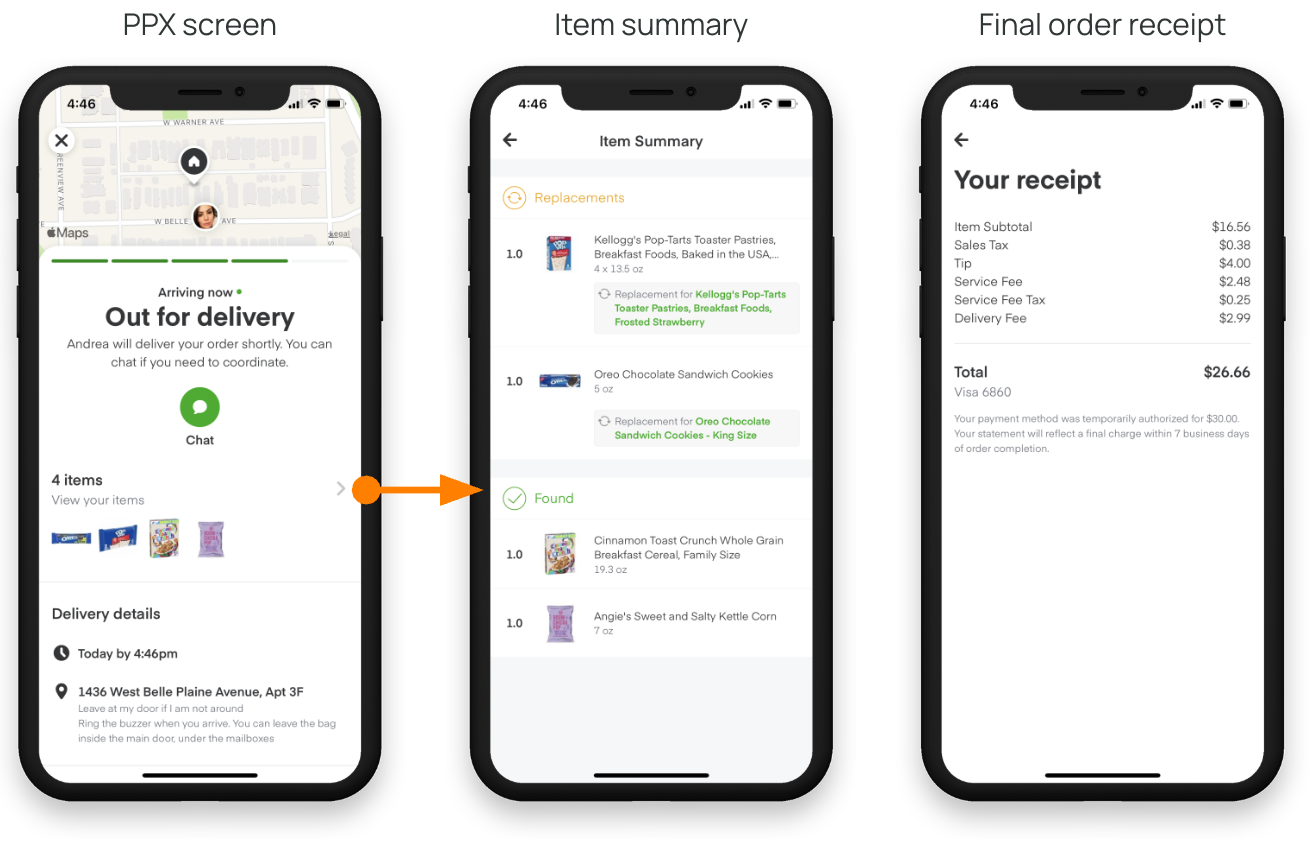 Customers receive a notification once the driver has finished shopping, at which point they can view their order receipt and easily see any substitutions or refunds that were made.